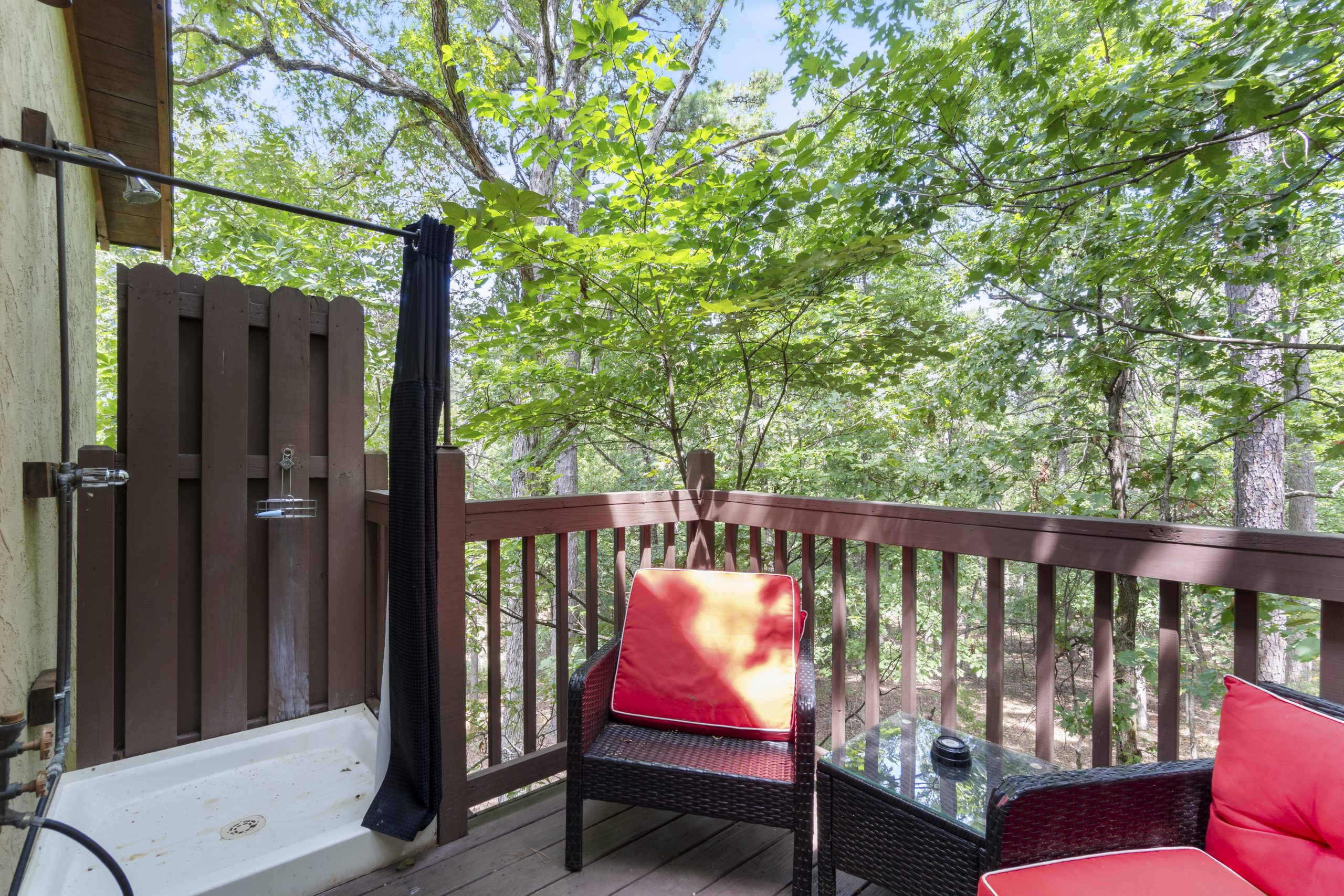 The secluded soothing view to nature from the back deck is one of the best things about this luxurious treehouse